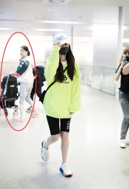 组图:网友偶遇baby带小海绵吃饭 外婆一同前往站一旁看护