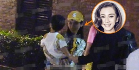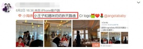 >组图:网友偶遇baby带小海绵吃饭 外婆一同前往站一旁看护