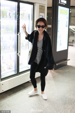 新浪娱乐讯 2019年7月9日,徐熙娣现身上海机场。小S动作浮夸搞怪,趴贩卖机凹造型,穿紧身裤秀美腿,俯视镜头撩发“放飞自我”。(图文:视觉中国)