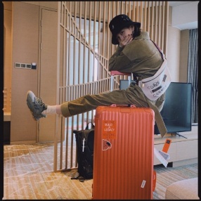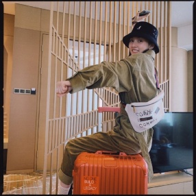 >组图:宋祖儿绿洲晒出行照元气满格 渔夫帽配连体衣俏皮坐行李箱
