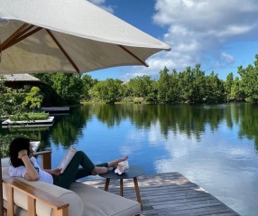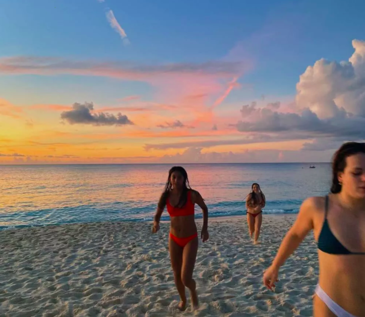11月18日,社交名媛邓文迪的大女儿格雷丝在其个人社媒晒照,她与亲友们在海边奔跑嬉戏,晒太阳度假。