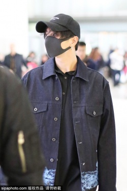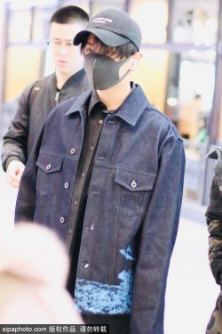 >组图:李汶翰身穿牛仔衣现身机场 戴黑色棒球帽口罩遮脸低调亮相