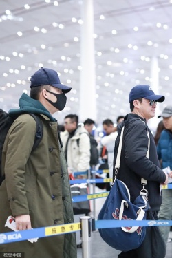 >组图:“攀登者”再合体!吴京张译现身机场 打扮低调仍显气场
