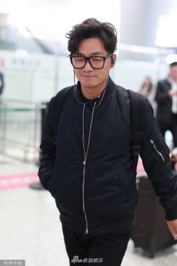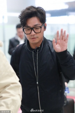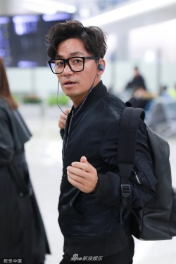 >组图:王宝强戴无镜片眼镜现身机场 边走边听音乐微笑打招呼