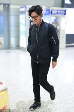 11月29日,上海,王宝强现身机场。他戴黑色无镜片眼镜和耳机,穿一身黑色look,背双肩包文艺范。(视觉中国/图)
