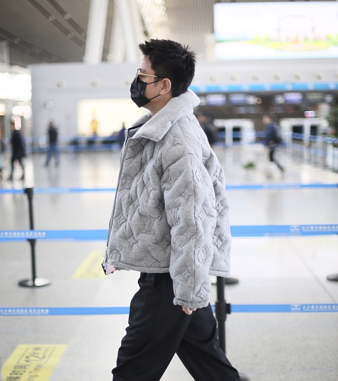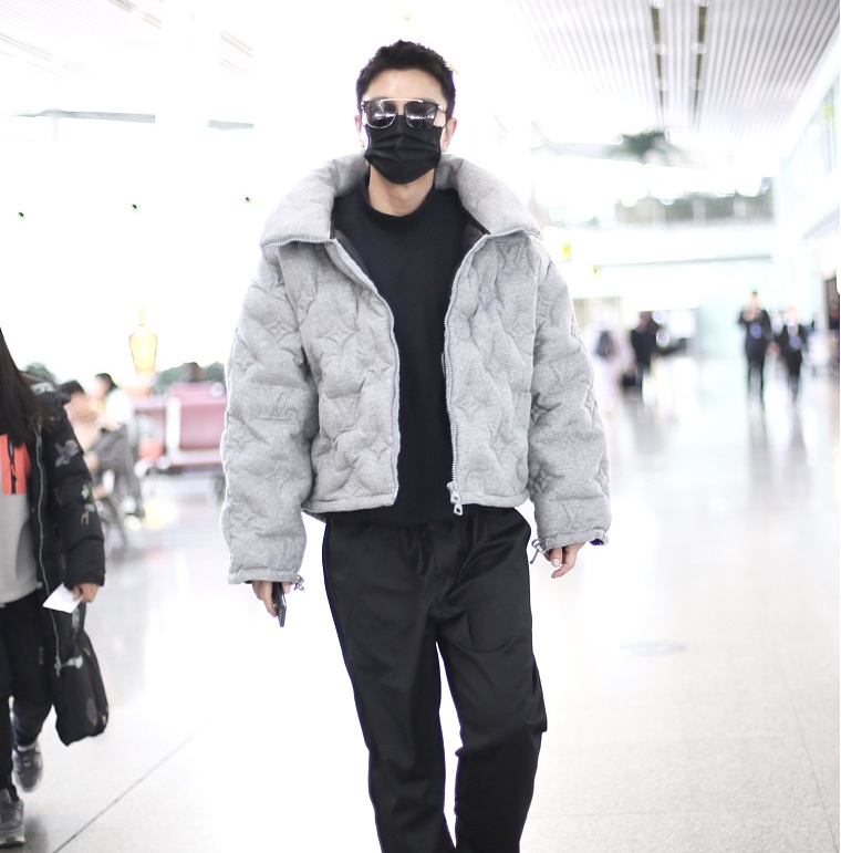 >组图:贾乃亮官宣离婚后首现身机场 穿灰色服装潮流品味在线