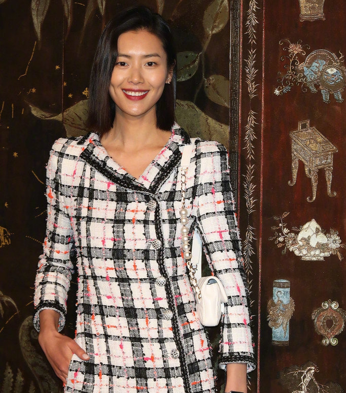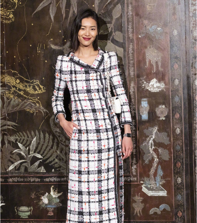 组图:刘雯斜纹软呢开衩裙复古时髦 宋茜黑色露肩装时尚干练
