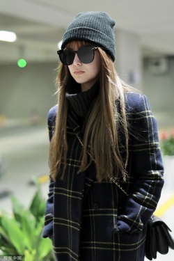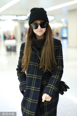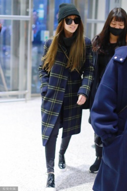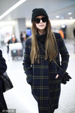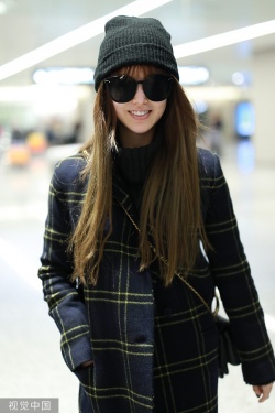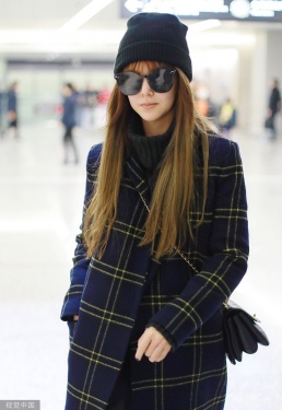 2019年12月5日,上海,昆凌现身机场。她梳齐刘海黑超遮面对镜甜笑,十分可爱,身穿格纹外套尽显复古气质。
