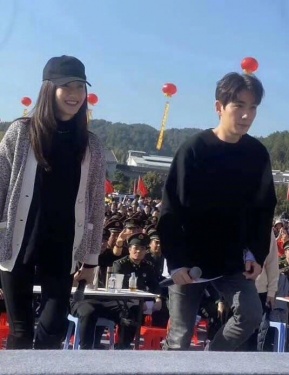 >组图:江疏影穿着低调难掩好身材 与朱一龙惊喜同框笑容温暖
