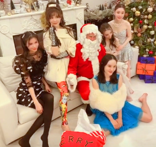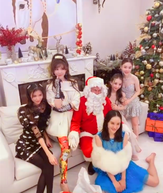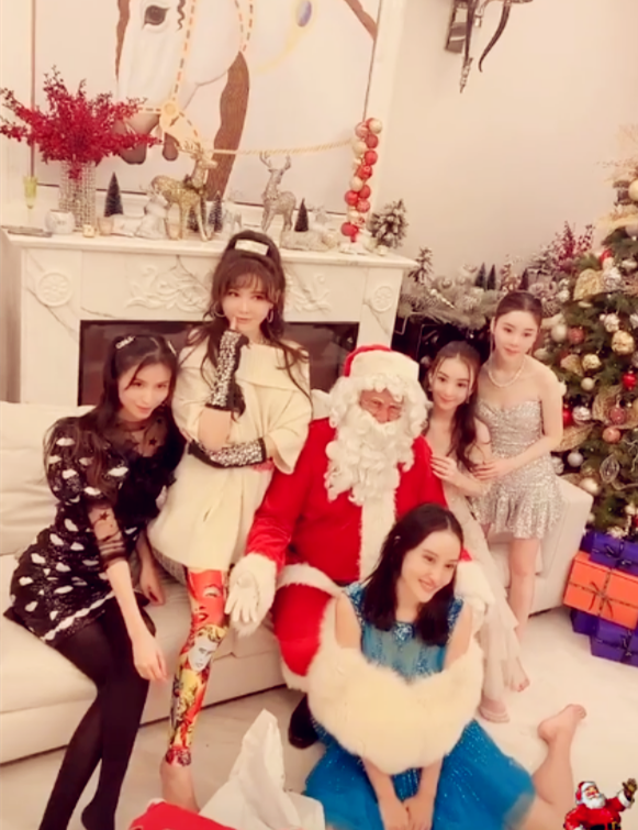 12月17日,“天王嫂”方媛(右二)与闺蜜们提前举办了一场圣诞派对。圣诞树、圣诞老人、麋鹿装饰……没有老公陪伴,名媛们摆出了各种合影姿势,玩得超开兴。