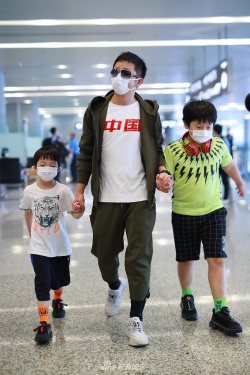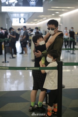 新浪娱乐讯 2020年5月29日,上海,拳王邹市明带着儿子邹明轩、邹明皓现身机场。拳王邹市明变孩子王一手牵一个萌娃,轩轩兴奋亮相熊抱爸爸敲可爱,还是当年那个泡面头男孩。