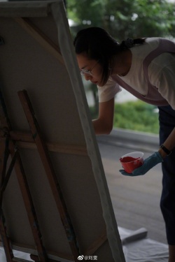新浪娱乐讯 6月3日晚,刘雯在微博分享自己画油画的照片,发文:“静下心来,去做一件事情都能感受到纯粹的快乐!就是辛苦林老师啦”并at艺术家林海勇表示感谢。照片中的刘雯身穿白T外搭淡紫色背心,她戴着眼镜,将头发随意扎起,手拿笔刷十分认真细致地在巨大的画布前创作着,文艺范儿十足。