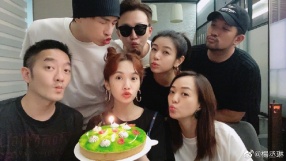 6月5日,杨丞琳在社交平台上传了一组郑元畅、陈妍希等好友为其庆生的照片,她扎着可爱哪吒头,手捧蛋糕,与朋友们同框齐嘟嘴,气氛欢乐。