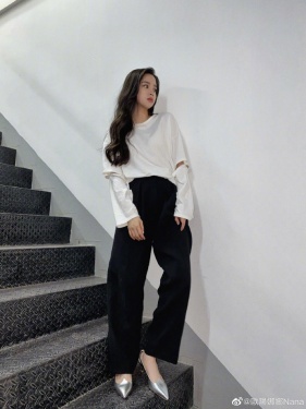 6月28日,欧阳娜娜在微博晒出近照与手绘涂鸦,并发文:“SUNDAY nabi”。照片中欧阳娜娜留着大波浪偏分长发,身穿白色长袖上衣搭配黑色西装裤,脚踩银色尖头鞋,一改可爱少女风,展轻熟女人味。