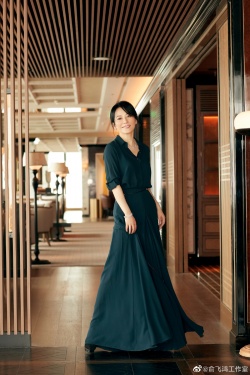 组图:俞飞鸿身着墨绿色长裙 银色项链更衬气质高贵优雅十足
