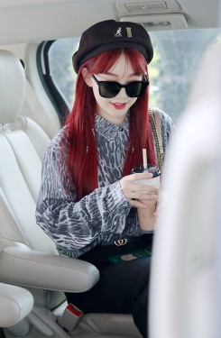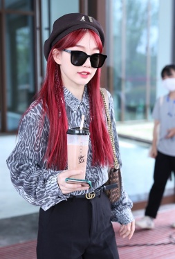 >组图:徐梦洁染红发娇艳似火 戴贝雷帽捧奶茶搭机甜度爆表