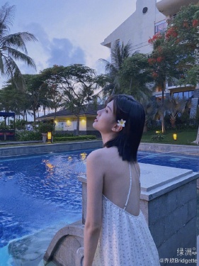 >组图:乔欣泳池边大秀光洁美背 耳后别花回眸眼神妩媚