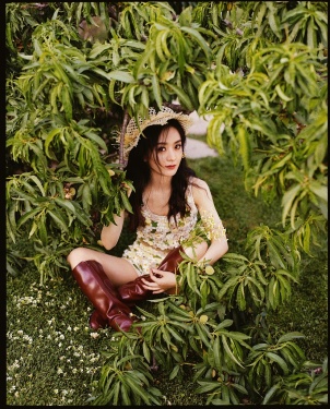 >组图:赵丽颖森系大片嘟嘟嘴俏皮可爱 甜美纯净宛如林中精灵