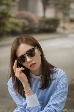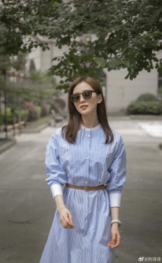 >组图:刘诗诗晒夏日街拍美照 穿蓝白衬衫裙配墨镜难掩清新气质