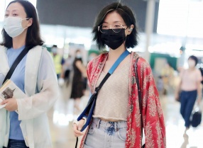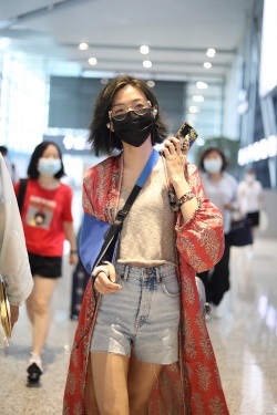>组图:万茜灰色T恤搭配牛仔热裤秀美腿 胳膊未愈挂绷带清早现身