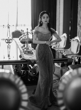 >组图:赵丽颖穿星钻裙拍写真“星光闪耀” 温柔披发气质独绝