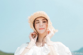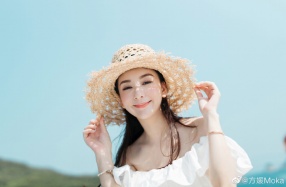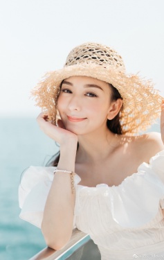 >组图:方媛海边一字肩白裙清爽甜美 皮肤白皙对镜卖萌少女十足
