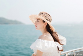 组图:方媛海边一字肩白裙清爽甜美 皮肤白皙对镜卖萌少女十足