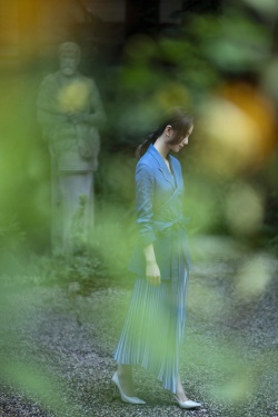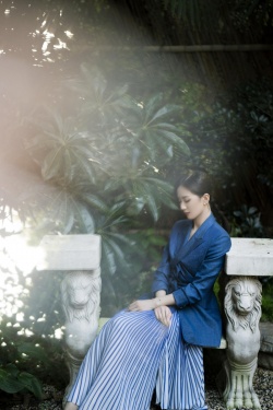 >组图:刘诗诗蓝色西装搭条纹裙 端庄温婉安静迷人
