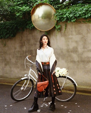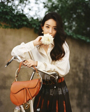 >组图:赵丽颖穿百褶裙拿捧花拍大片 回眸一瞬显恬静淡雅