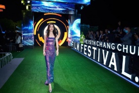 >黄圣依亮相中国长春电影节 人鱼姬长裙明艳动人