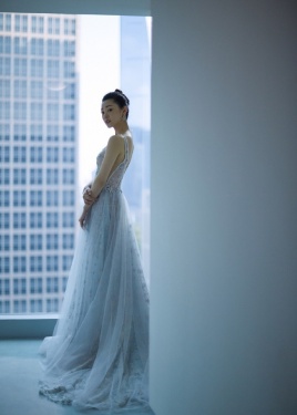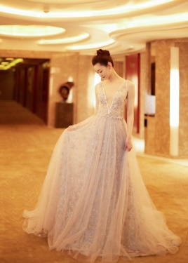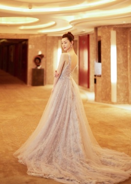 >宋轶 一袭蓝色纱裙礼服仙气十足,前后深V大秀天鹅颈,举手投足优雅迷人~