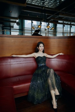 当妈后的赵丽颖越来越时髦 一袭抹胸长裙优雅性感