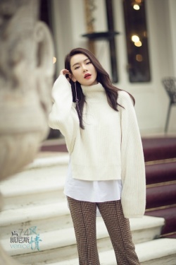 戚薇 威尼斯风情大片 白衣红唇展优雅知性美 [爱你]