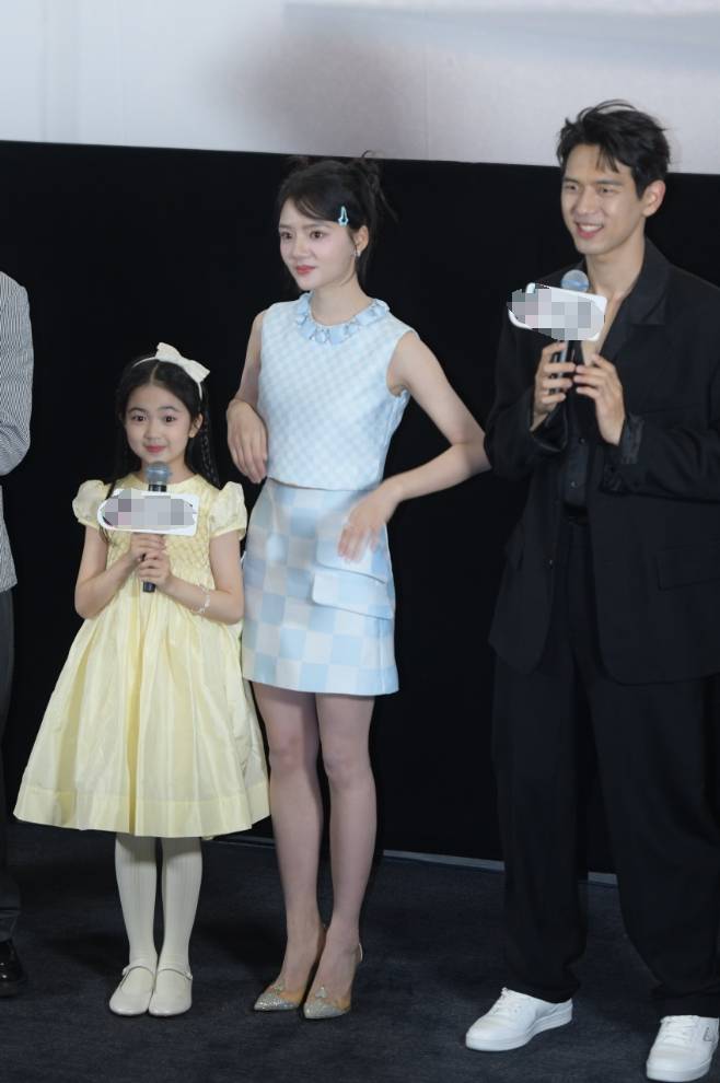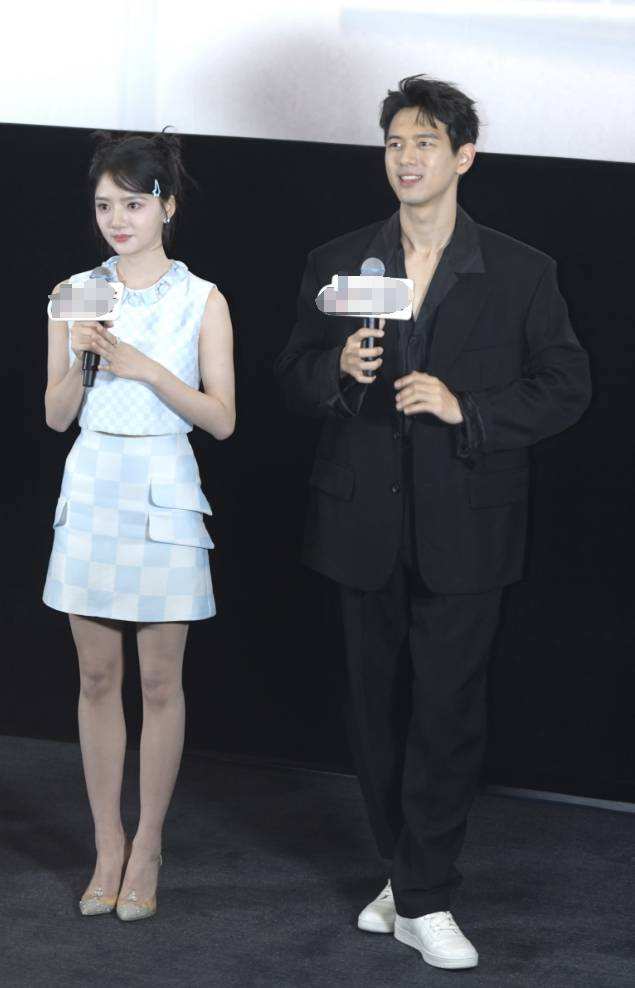 任敏蓝色套装搭配丸子头造型,清新甜美。