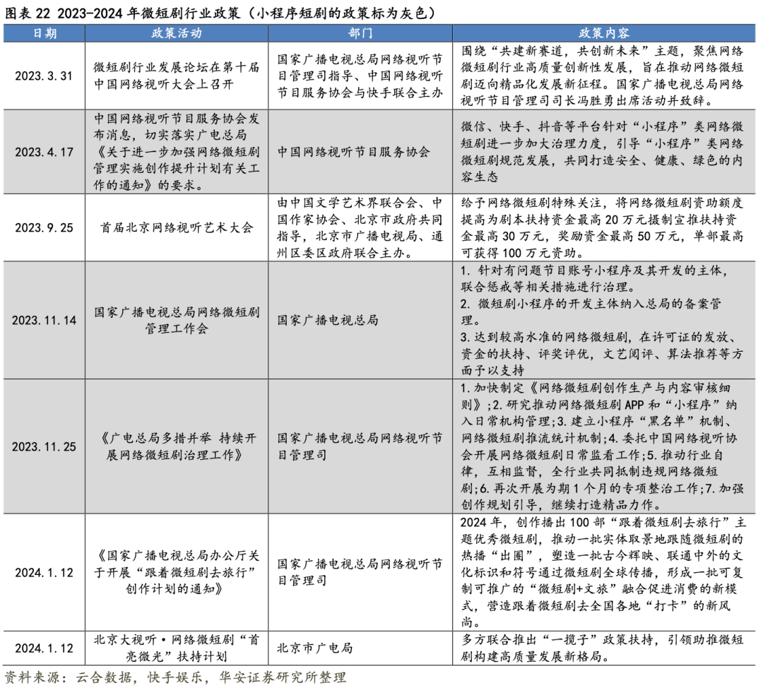 但正因短剧门槛较低,同质化、低俗化、不良价值观和粗制滥造的短剧充斥内容付费市场,行业监管政策紧锣密鼓地跟进。去年的11月,广电总局开展为期三个月的专项整治,微短剧小程序的开发主体,除应符合国家有关应用程序提供者和应用程序分发平台的管理规定以外,还应取得信息网络传播视听节目许可证,并依规纳入总局的备案管理。