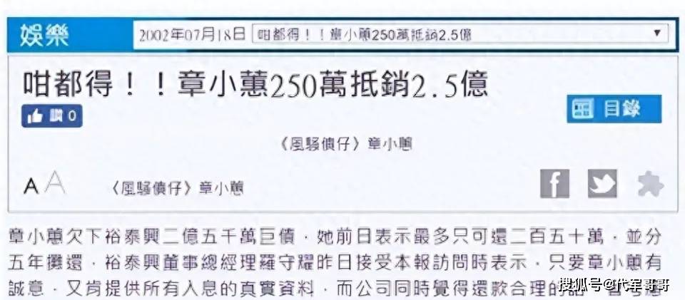 两人离婚后没多久,章小蕙就在外边欠了很多钱,保守估计有2.5亿,为了填补窟窿,章小蕙干起了旁门左道,靠告报社弄钱。