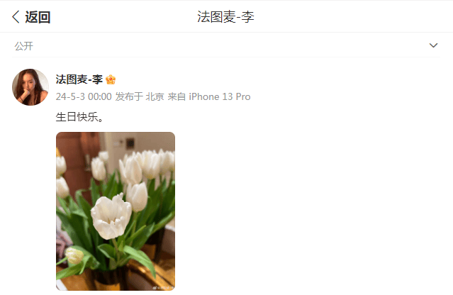 2024年5月3日是著名主持人李咏的56岁冥诞,当天零点零分的时候,他的女儿法图麦也在个人的社交平台上晒出了一张郁金香的图片,并为此配文:“生日快乐。”虽然只有短短的四个字,但是这也足以看出她对父亲的思念,让人隔着屏幕也能感受到了丝丝的悲伤情绪了。