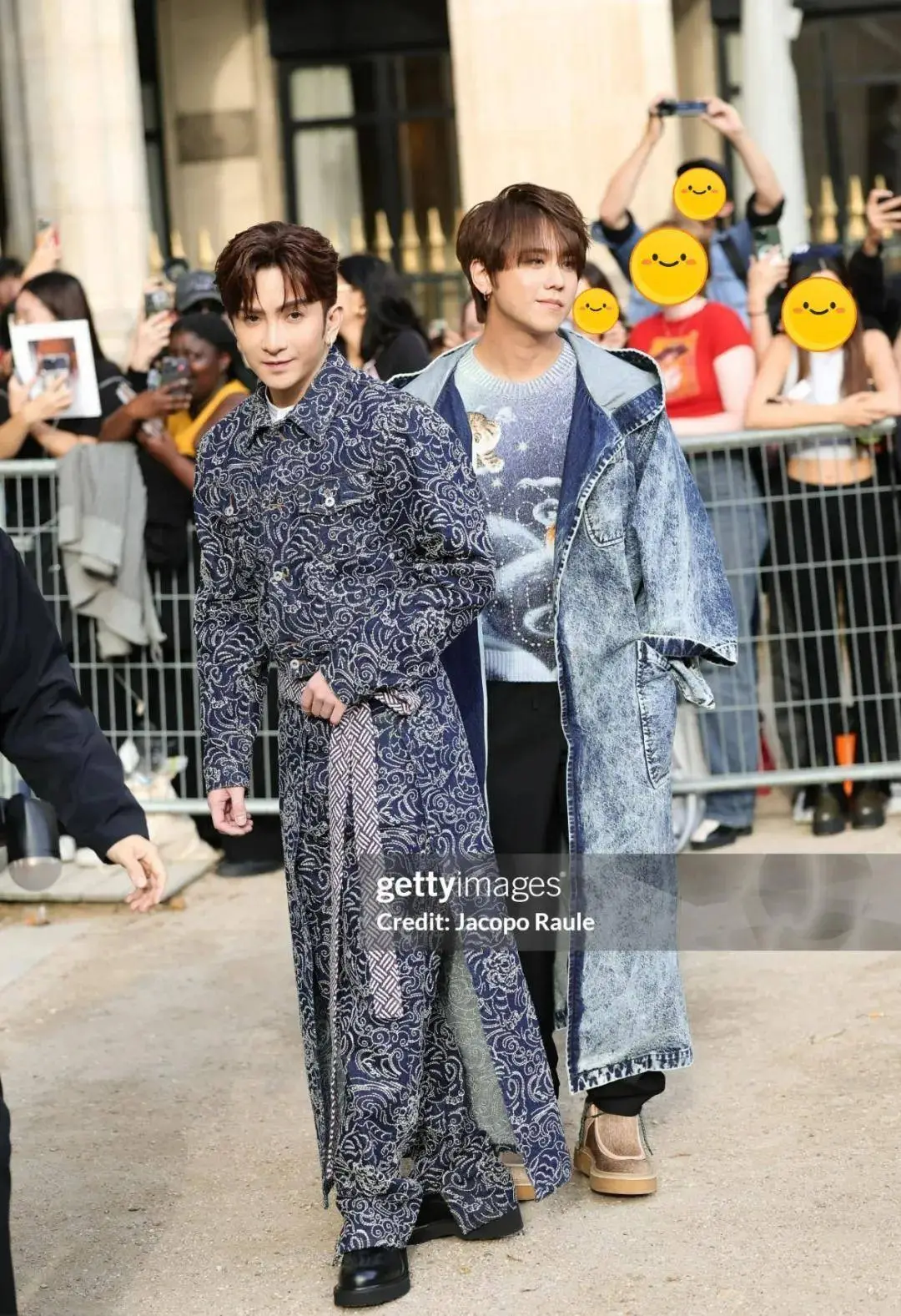 这次的时装周还能看到两位香港顶流在秀场同框。左边的是次顶流卢瀚霆,他仰仗着自己有一脸精雕细琢但科技感十足的五官,自信的笑容中透出一种“吃定你”的拿捏感;右边的是顶流姜涛,哪怕颜值下降、体型发福,粉丝也不离不弃并坚定认为他除了帅之外又多了几分可爱,难怪他还能淡定露出耍帅的笑容。