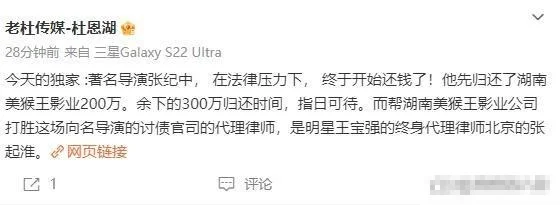 今年4月,樊馨蔓的代理律师表示,张纪中只还了200万,还拖欠300万。