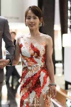 组图:张嘉倪穿亮片裙明艳娇俏 与老公买超挽手同框甜蜜爆棚