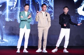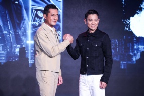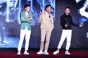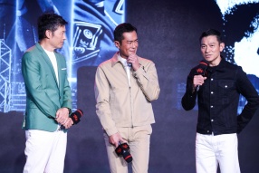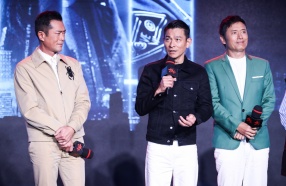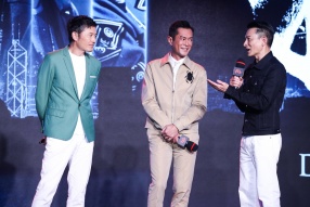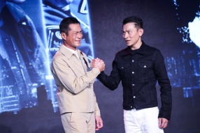 >组图:刘德华古天乐两代杨过同台扳手腕 华仔模仿007举枪姿势