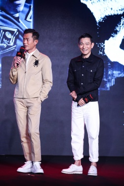 新浪娱乐讯 7月7日,电影《扫毒2》在北京举办发布会,刘德华古天乐两代杨过同台扳手腕,华仔还在台上模仿007举枪姿势,现场氛围十分融洽。(宫德辉/图)