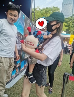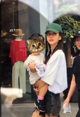 组图:网友偶遇baby带小海绵吃饭 外婆一同前往站一旁看护