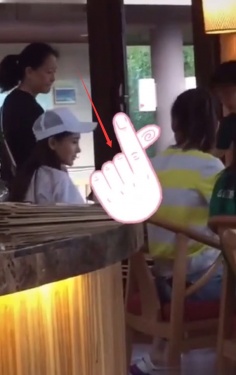 >组图:网友偶遇baby带小海绵吃饭 外婆一同前往站一旁看护