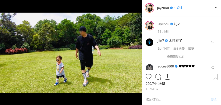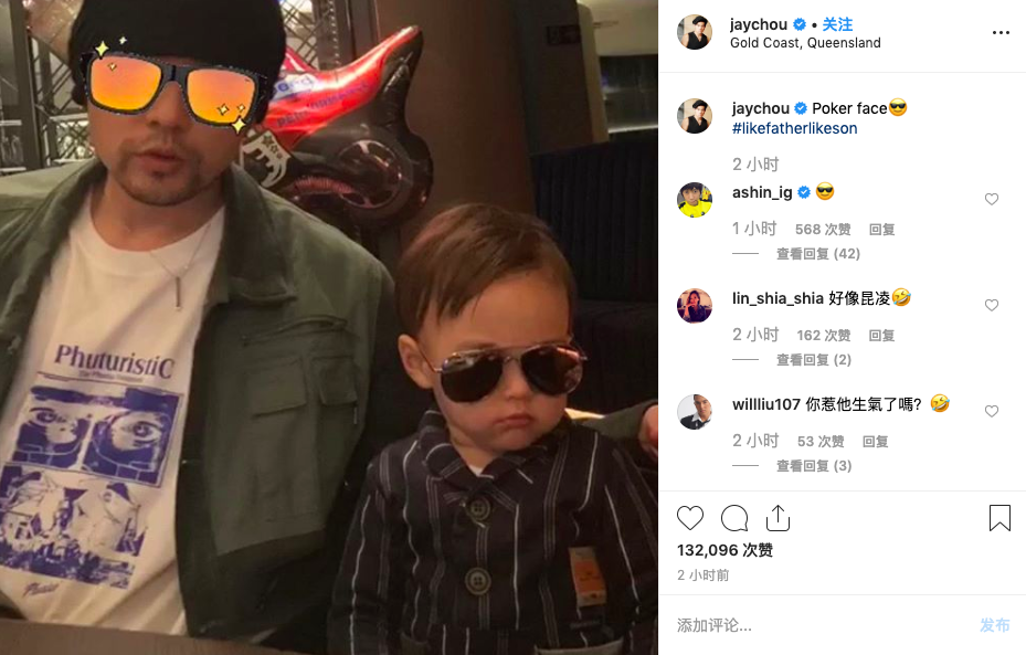 组图:萌翻!周杰伦晒与儿子“扑克脸”合照 Romeo嘟嘴超可爱