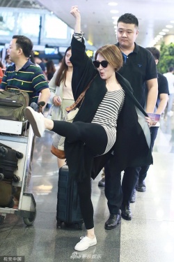 新浪娱乐讯 2019年7月9日,徐熙娣现身上海机场。小S动作浮夸搞怪,趴贩卖机凹造型,穿紧身裤秀美腿,俯视镜头撩发“放飞自我”。(图文:视觉中国)