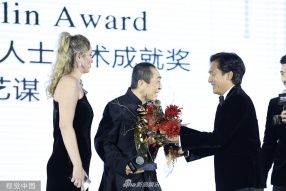 >组图:张艺谋获奖梁朝伟亲自献花 名导影帝相拥场面罕见