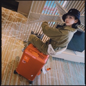 >组图:宋祖儿绿洲晒出行照元气满格 渔夫帽配连体衣俏皮坐行李箱