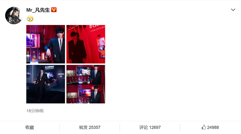 新浪娱乐讯 11月21日,吴亦凡在微博晒出新造型。照片中,吴亦凡身穿黑色西装,系着领带站在灯红酒绿间,一头齐刘海十分惹眼。