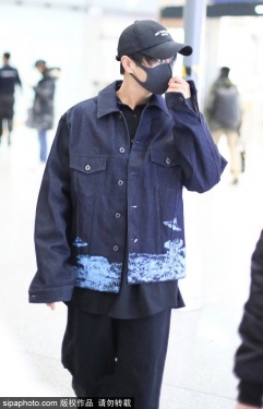 >组图:李汶翰身穿牛仔衣现身机场 戴黑色棒球帽口罩遮脸低调亮相